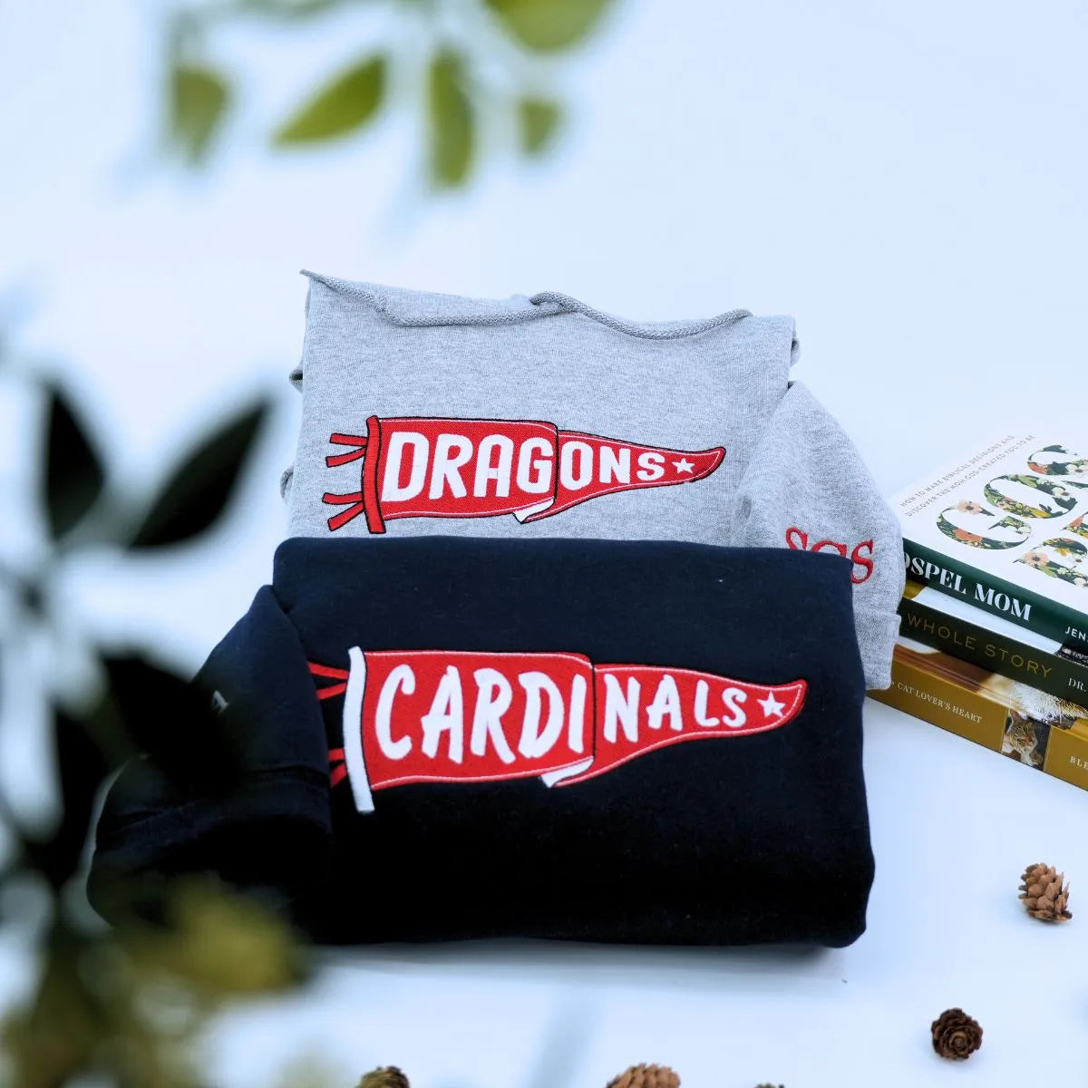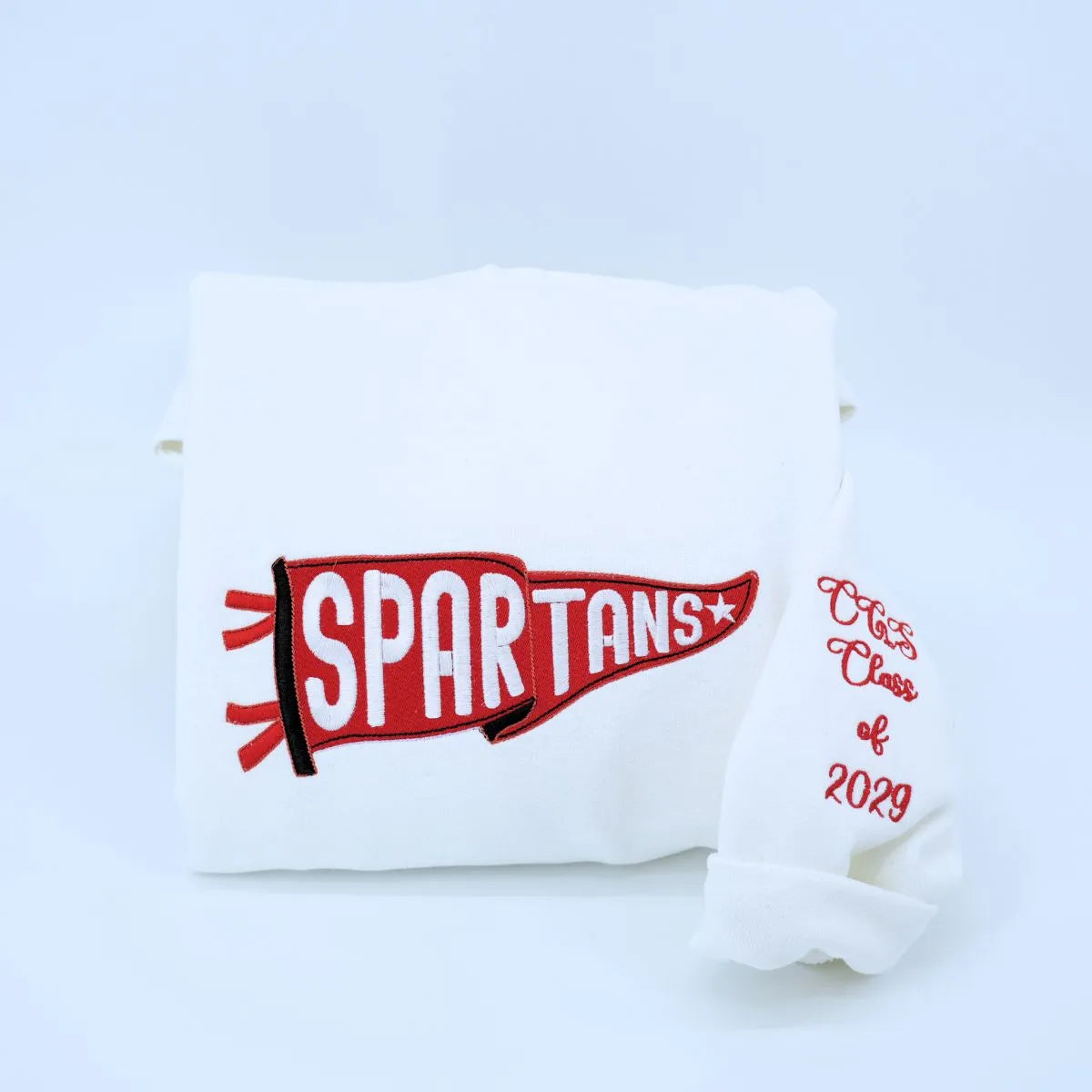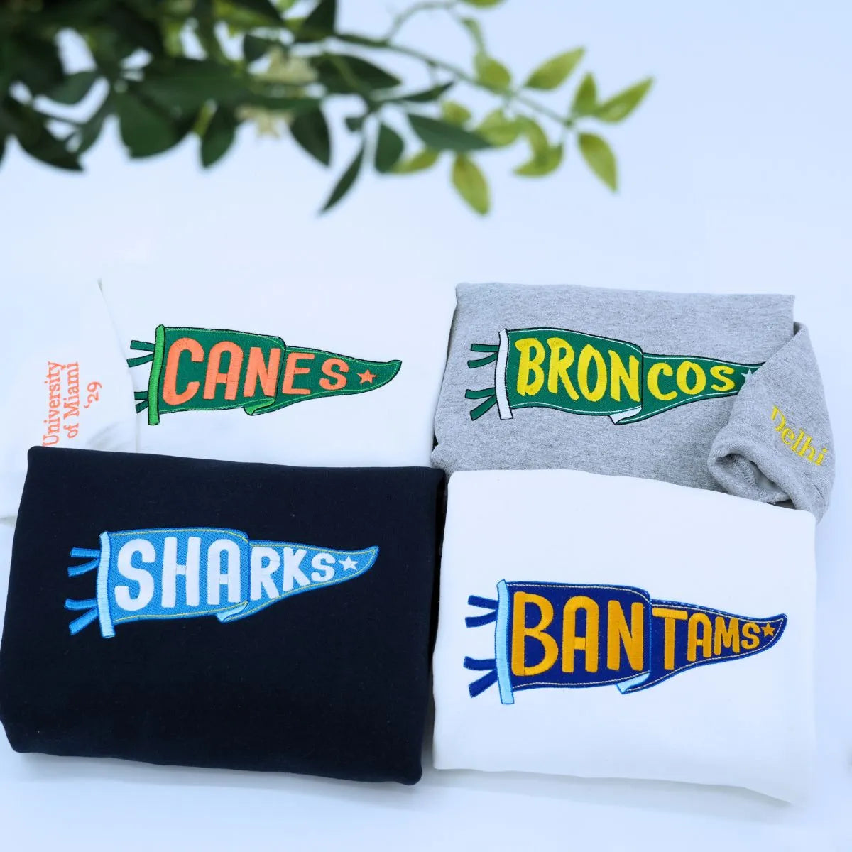 Custom Embroidered College Team Spirit T-Shirt with Pennant Design
