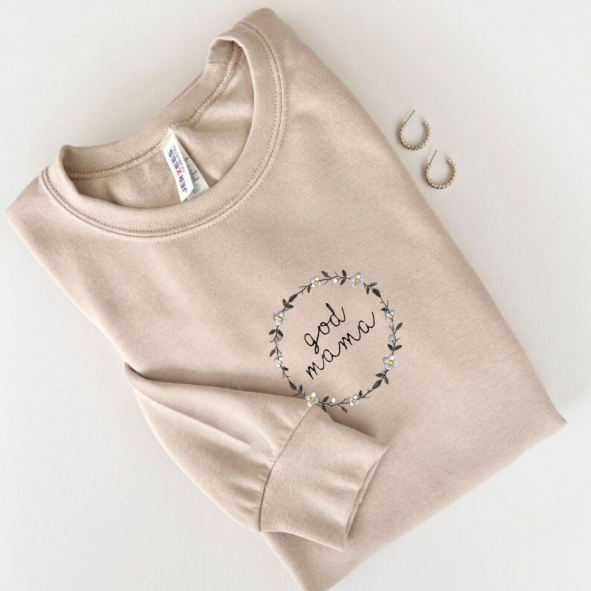 Stay cozy and stylish with this custom embroidered Mothers Day sweatshirt featuring a personalized crewneck. Show your godmother your appreciation with this unique and heartfelt gift. Customize it with a name or special message to create a personal touch. This comfortable and fashionable sweatshirt is suitable for any occasion a perfect gift option. Your godmother will love and proudly wear this Custom Embroidered Mothers Day sweatshirt.