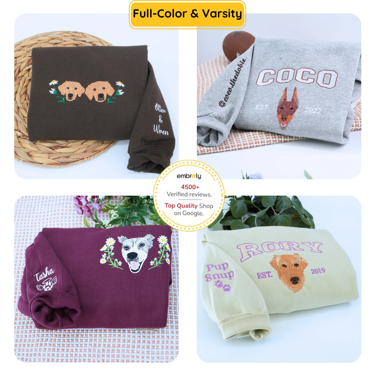 Give a unique and thoughtful gift with our Dog Embroidered Custom Sweatshirt. This high quality cotton felt shirt can be customized with your dogs image and a personalized message. Our shirts are durable comfortable and stylish suitable for various occasions. Express your love for dogs through this meaningful gift that brings joy and surprise to pet lovers everywhere. Order yours today to spread the love.