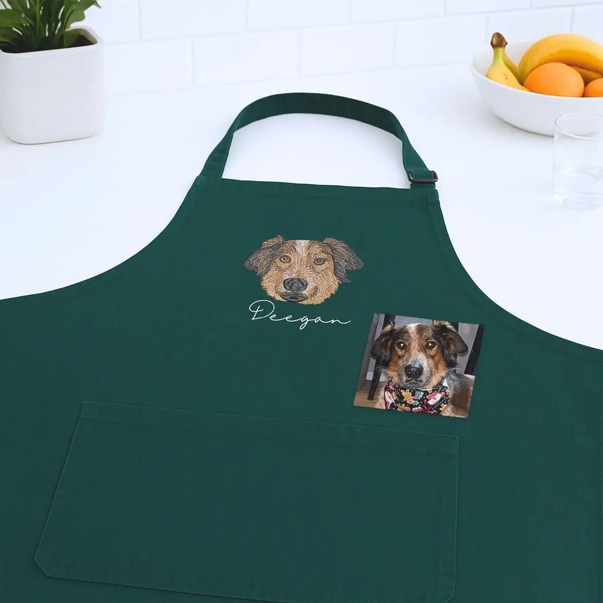 Elevate your kitchen style with our Embroidered Dog Portrait Custom Apron. This unique apron features an intricately embroidered portrait of your dog showcasing their charm and personality. Crafted from top quality fabric this apron provides durable protection while adding a touch of personalized flair to your cooking routine. Why Choose Our Custom Dog Portrait Apron: Personalized Embroidered Design: Transform your dogs photo into a lifelike embroidery masterpiece. Tribute to Your Canine Companion: Capture the essence of your furry friend in a functional and heartfelt apron. Durability and Style: High quality material ensures stain resistance and a fashionable look. Thoughtful Gift Idea: Perfect for any dog lovers special occasion. Add a whimsical touch to your kitchen with this custom apron and celebrate your furry friend on every cooking adventure. Order now.