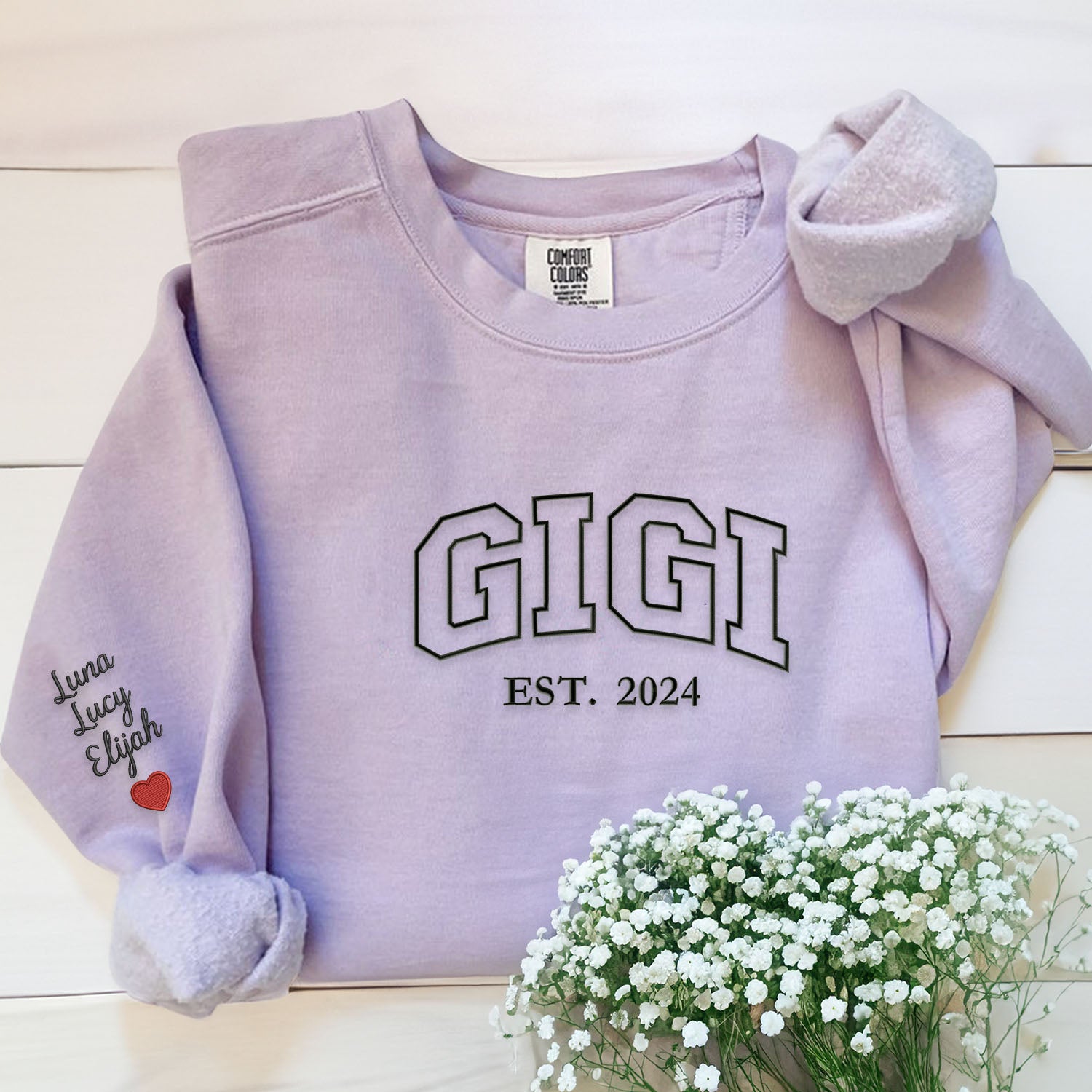 Celebrate the cherished role of becoming a grandparent with ourGrand Estshirt. This varsity style shirt features elegant embroidery honoring the year they embraced this profound title. Wrapped in love it symbolizes new beginnings and provides ultimate comfort on every grand adventure shared. Stylishly designed and invitingly cozy this shirt is a warm reminder of the love wisdom and joy grandmothers bring to their families. Its the perfect attire for playdates laughter filled days and heartwarming moments filled with endless hugs and boundless love. Crafted with enduring quality each stitch represents the strength and grace of a grandparents love designed to endure through countless happy memories. Gift this shirt as a heartfelt tribute to the invaluable role grandparents play in every familys story. 🎁 Honor Grandparents Legacy with Every Wear.