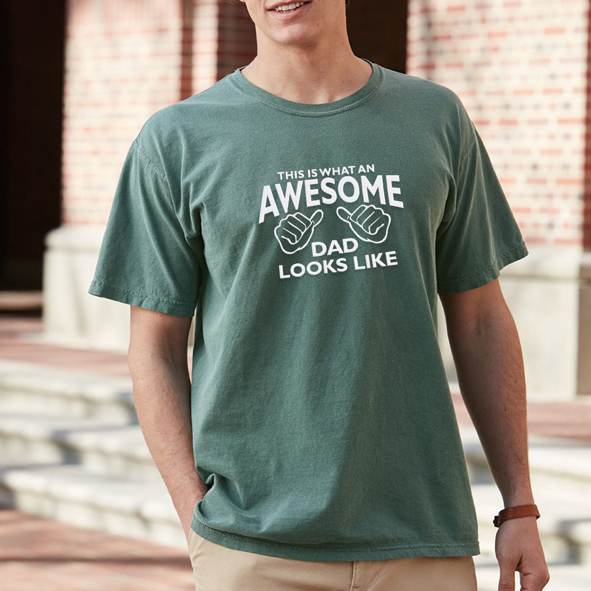 Celebrate the coolest dad with ourAwesome Dadshirt. This statement piece embroidered with sleek minimalist text exudes style and recognition of his awesomeness. Crafted from top quality materials for durability and comfort this shirt is a gift as unique as he is perfect for showing appreciation on special occasions. Let Dad enjoy both comfort and style effortlessly. Discover more about our Premium Quality Craftsmanship now.