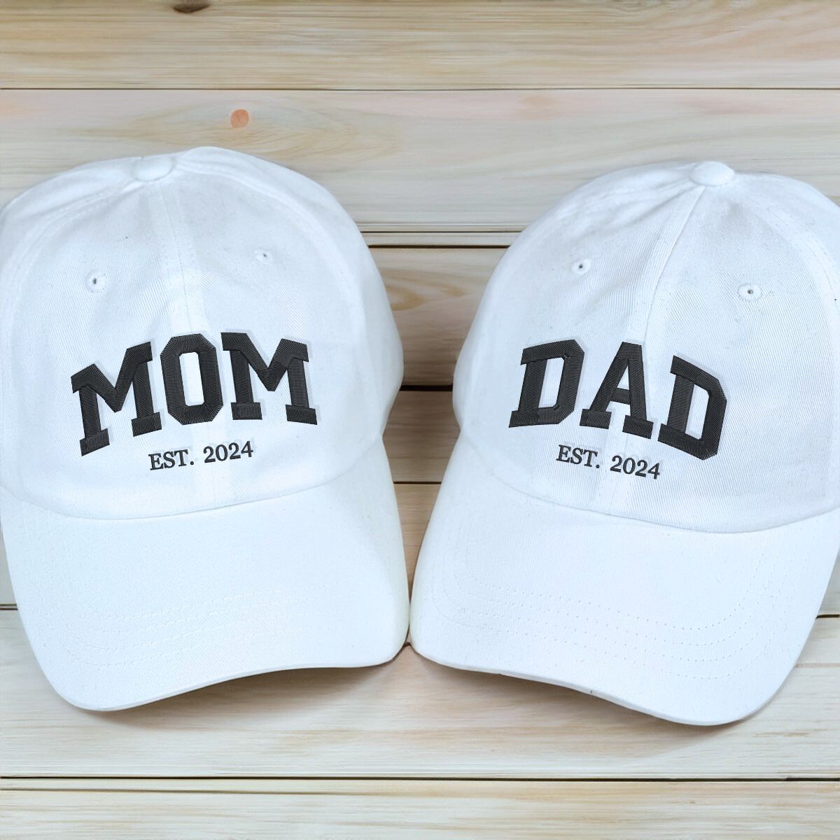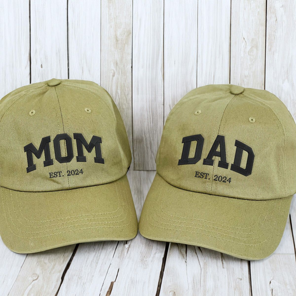 Celebrate the special bond of parenthood with the Mom and Dad Embroidered Hat Set. This set includes two custom hats beautifully embroidered withMomandDad. These stylish and durable hats feature an adjustable fit for all head sizes making them perfect for daily wear. Made from high quality materials these hats offer both comfort and fashion. Dont miss the exclusive discounted price for a limited time. An ideal gift for proud parents to match in style on any occasion from birthdays to holidays. Make every moment memorable with this thoughtful and stylish gift for mom and dad.