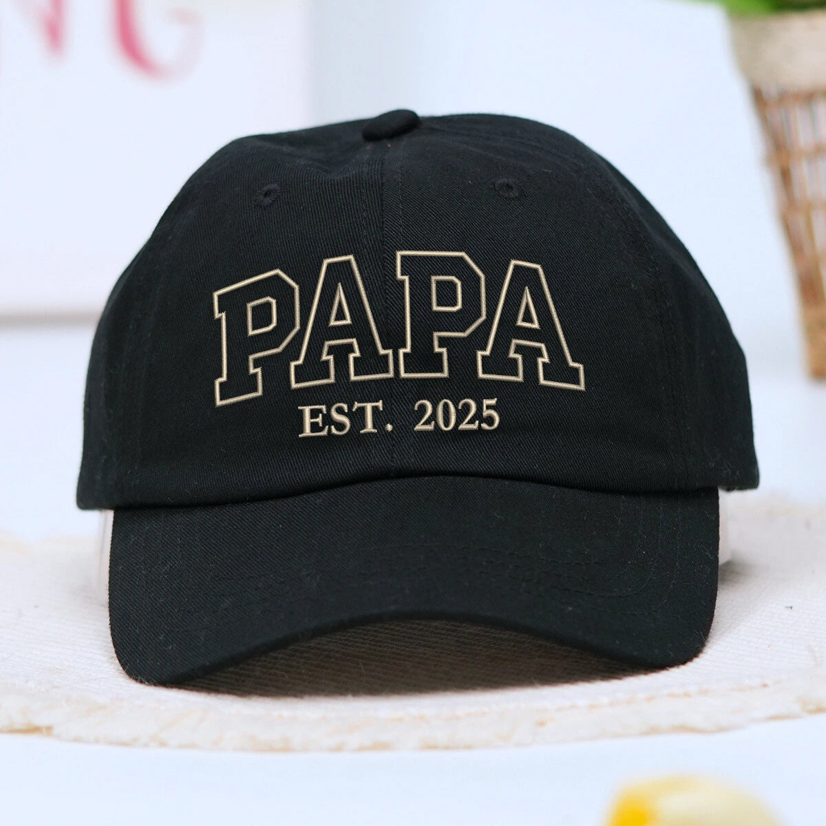 Celebrate Grandpa with our Custom Embroidered Grandpa EST Dad Hat. This classic baseball cap is a perfect keepsake personalized withGrandpa EST. Yearfor a sentimental touch. Made from breathable cotton with an adjustable strap its ideal for Fathers Day birthdays or first time grandpas. The timeless design high quality stitching and customizable options make it a lasting memento. Show your love for Grandpa with this stylish hat today.