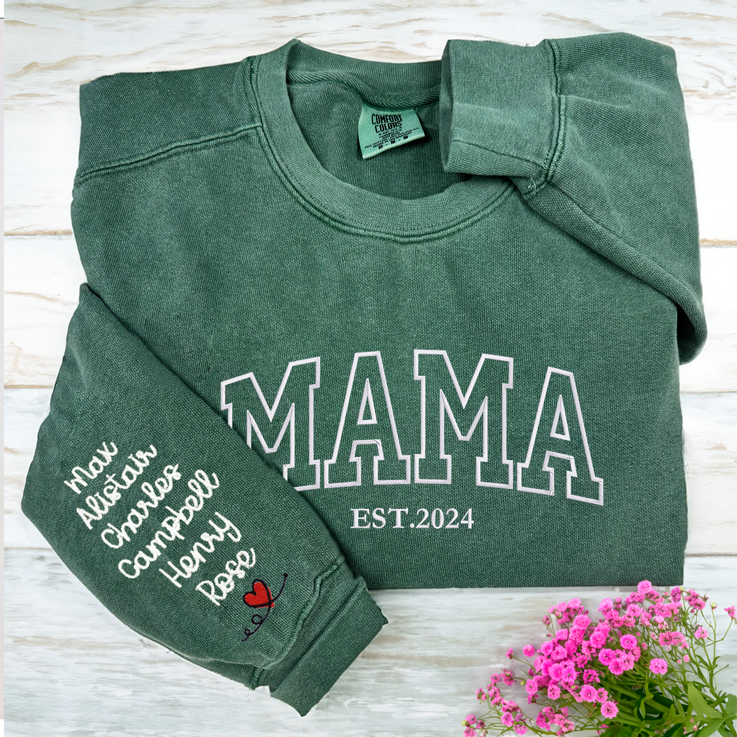 Indulge in the luxurious comfort of our Personalized Mama Crewneck Sweater specially designed for moms. Embrace motherhood with this chic minimalist style featuring customMamaembroidery that sets it apart. Crafted from premium materials this sweater provides unmatched durability and supreme comfort for everyday wear. Whether running errands or unwinding its your go to choice for both coziness and fashion. Celebrate mom life with every wear: perfect for new moms seasoned veterans and all the amazing moms in between. Choose your favorite color to make it uniquely yours or gift it as a thoughtful reminder of motherhoods beauty. Add a touch of style to your mom life now.